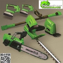The Chameleon? Trimming Package is a new and adaptable Multi-Tool system for the home, lawn and garden. This is a new and unique concept for Lithium-Ion Technology in the Lawn and Garden Arena. Four different products (Hedge Trimmer, Chainsaw, Grass Shears and Hedge Shears) use the same 18V Lithium-Ion Battery, Rear Handle and optional 6' Tool Extension platform to grow to a total of eight different items included in one box.?The Chameleon? lightweight design and versatility makes it easy for all users.? Best of all, the Chameleon? is affordable. (*Competitor tools, if purchased individually at your local store, would retail well over $450.00.)? Visit www.sunziinc.com to see the Chameleon in action. Included in Package: Chain saw body, Blade cover, Chain, Chain bar, Wrench, Grass/Hedge shear body, Grass shear blade, Hedge shear blade, Hedge trimmer body, Extension pole, 2 rear handles, 2 rechargeable 18 Volt Lithium-Ion batteries, Battery charger, Instruction manual, and a Manufacturer's 2-year limited warranty